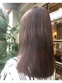 赤味をしっかり抑えて柔らかく透明感のあるグレージュカラーに。パツッと切ったストレートを生かしてヘアオイルでスタイリングする事で艶感アップ!