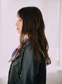 Aラインシルエットのロングスタイルに耳くらいのところからカールが出るようデジタルパーマをかけています。カラーは根元から毛先までグラデーションになっていて暗い~明るい縦のグラデーションがクールな印象になります◎