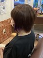 全体をカラーで染めてサイドをパープルカラーにしました。縮毛矯正/カラー