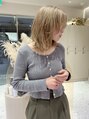 ブリーチ2回ベースのホワイトベージュ。カットはレイヤーが入ったナチュラルウルフ。トレンド感たっぷりな今っぽいヘアスタイル!