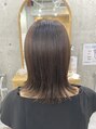肩で当たるぐらいの長さでカットし、お手入れしやすい外ハネヘアーへ。カラーは艶のあるグレー系で落ち着きカラー。