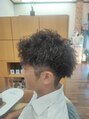 ツイストパーマと波巻きパーマをあわせた、MIXパーマです!!サイドは広がらないように、ツイストで、モヒカンラインに波巻きパーマを当てて、動きを強めにしました!!グリースセットで動きも出て、簡単にスタイリングできます!!