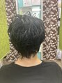 大きめのCカールパーマで、ウルフカットヘアーです。