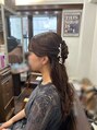 両家顔合わせとの事で、お客様と細かくご相談をし、気品のある雰囲気に合わせて清楚にお仕上げいたしました。またお食事の際に顔にかからないよう一工夫。おめでたい席のお手伝いが出来て嬉しく思います。おめでとうございます。