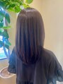 オーガニック配合カラー材で自然に白髪を染めます。広がりが気になるのでお顔周りのみたっぷりのレイヤーを入れてスッキリとした印象に♪