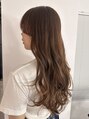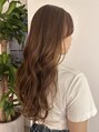 ロングのブラウンベージュ。明るすぎず暗すぎず上品なブラウン。ウェーブに巻いてやわらかさと立体感をプラスにしました。