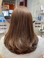 レイヤーを低めに入れまとまりつつワンカールでも動きの出るスタイルに♪明るめだけど柔らかい透明感あるベージュが上品さが出ます!