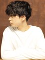 ベースは襟足とサイド短めのマッシュショート。トップにはレイヤーを多めに入れてゆるめにパーマをかけて立体感を出しています。耳上と襟足を短いツーブロックにしてあるので、全体的に長さはあるけどすっきり感のある印象になります
