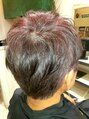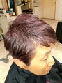 毎回白髪染めの色を変えるお客様。ビフォーは短くカットし、赤紫が退色した状態。今回は秋の新色、ピンクバイオレット。カラーなので退色はありますが、マニキュアみたいに色落ちはございません。
