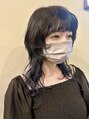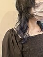 レイヤースタイルに、1ブリーチで裾にブルーを加え、全体はブルーブラック系のカラーで大人可愛く♪ 26ミリのコテでランダムに巻いて、パーマのようなスタイルにも◎