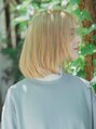 丸顔さんにもオススメの顔回りにレイヤーが入った内巻きボブスタイルになります!ボブスタイルはフェイスラインが目立ちにくいスタイルになるのでフェイスラインが気になる方にもオススメです。髪色は明るめのベージュカラーです。【ブリーチ/ボブ/韓国】