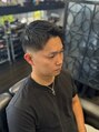 フェードカットです。クロップの様に全体短くして前髪を上げています。とてもよく似合っていますね!!