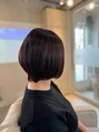 落ち着いたブラウンカラーで染めたボブスタイル。少し段を入れることで軽やかさをプラスし、毛先はタイトにまとめて洗練された印象に仕上げました。シンプルながらも上品な雰囲気が漂い、どんなシーンにもマッチするスタイルです。