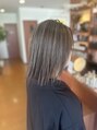極細ハイライトを全体的に施しアッシュベージュで赤味をしっかり抑えてます♪ハイライトは白髪ぼかしの効果もあるので幅広いデザインに対応できますよ!結んでも可愛いです♪