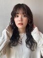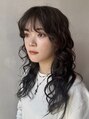 ロングヘアにスパイラルパーマ、バングはピンパーマで柔らかいけさの動きになるようにパーマをかけます仕上げはセミウェットの状態から全体的にムースをつけて完成