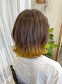 エンドカラーに黄色をいれました。ブリーチ履歴を活かして毛先にカラーミューズのイエローを。