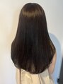 フェイスレイヤーを入れて顔まわりに動きのあるスタイルカラーは赤みを抑えたダークブラウンカラーに!水素が発生するサステイナブルカラーなので髪に潤いがでて艶のある髪に