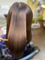 根元ピコカラーで白髪染め中間毛先ピコカラーでトーンアップ、ストレートスタイル