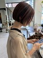 アゴラインの切りっぱなしボブでデザインカラーでアンブレラカラーを入れてあります。スタイリングで立体感が出やすいカラーデザインになります。