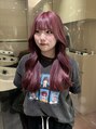 カシスピンクカラー。ブリーチ1~2回ベース。ほんのり入ったローライトが陰影をつけてくれて立体的に見えておしゃれです◎