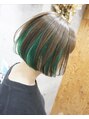 ミニボブ/インナーカラーグリーン/ホットペッパービューティー