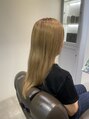 全頭ブリーチ履歴アリ。繊細ハイライトで立体感ある艶髪へ。柔らかいシフォンベージュで華やかな印象に。
