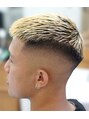 金髪クロップスタイルでトレンド感抜群!サイドとバックをスッキリ刈り上げ、トップに残した毛束で動きをプラス。軽やかな質感とキレのあるシルエットが、どんなシーンでも爽やかさを演出します。