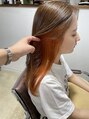 耳上から耳後ろ少しをワンブリーチした後に、オレンジでカラーしました♪アイロンを軽くとおしてヘアオイルをつけてスタイリングしています。