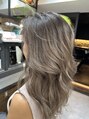 バレイヤージュの外国人カラー仕上げ!ミルクティーベージュに少しアッシュでくすませた色味が大人でも楽しめるハイトーンカラー。根元を暗めにしたグラデーションカラーです!動きのあるレイヤーカットで巻き髪ヘアセットも楽しめます