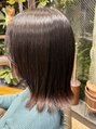 重ためボブのスタイルに透明感のある艶カラーとコテで巻いてエアリー感をプラス♪