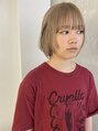 顔まわりにレイヤーを加えたボブに1ブリーチで作るベージュカラーです。彩度は柔らかく、透明感抜群のベージュカラー。