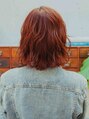 肩につくくらいのレングスにカット。切りっぱなしスタイルで毛量調節し、パーマを波ウェーブ出かけました。顔まわりは外に流れるように巻いてあるので、スタイリングも簡単。カラーは暖色系で、艶が出るようにしました。