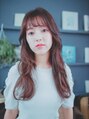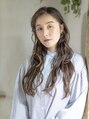 肩につくくらいのレングスにカット。切りっぱなしスタイルで毛量調節し、パーマを波ウェーブ出かけました。顔まわりは外に流れるように巻いてあるので、スタイリングも簡単。カラーは暖色系で、艶が出るようにしました。
