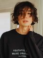 強めにパーマをかけたメンズのミディアムスタイルです。全体的に長さや重たさのあるスタイルですが、顔まわりにもしっかりパーマをかけてハイライトをいれることで動きが出て全体敵に軽い印象を作ることができます。