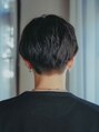襟足は柔らかく刈り上げて、前下がりにパツっと切ったトレンドのメンズスタイルです。量感調節をしっかりすればスタイリングもとてもラクで、カジュアルにもフォーマルにも似合います。緩くパーマをかけて抜け感を出しました。
