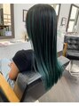 バレイヤージュカラーにターコイズグリーンを塩基ミックスで入れたスタイル
