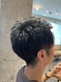メンズショートフェザーパーマブルーブラック刈り上げイメチェン