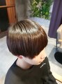 サイド、えり足を刈り上げマッシュベースにカットし、スライドカットで艶のある質感を出しました。