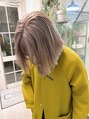 赤みをブリーチで消し、髪に優しくいたわりながら薬剤選定します。色落ちはグレージュのような柔らかいベージュ系カラーになります。グレージュで色落ちが早いと感じる方にはオススメの馴染むブリーチカラーになります!!