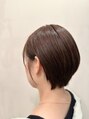 ショートボブ×マットグレージュで赤味を抑えたスタイルです。スタイリングはバームでナチュラルな仕上がりに。