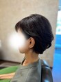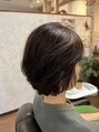 襟足はスッキリと、全体的に丸いフォルムになるようにカット。カラーはブラウン系の深みのあるお色で秋を先取り♪お仕上げはご自身の癖を活かしてスタイリングしました!落ち着いた中に動きのある大人可愛い印象に◎
