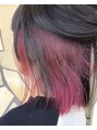 黒色メインに赤のインナーカラーなので、赤がものすごく映えて綺麗です!こちらのお客様はブリーチ履歴ありです。お客様のご希望に合わせてお色の調整などさせていただきますので、お気軽にご相談ください^^