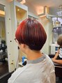マッシュベースのショートスタイルアンブレラカラーは伸びてきてもオンカラーすることでデザイン性が復活します!前髪は毛流れに応じてちょこっとアシメに。