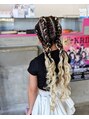 4本のコーンロウに毛先はカール加工、ブロンドのエクステで長さを出しました!!所要時間は1h程度です。