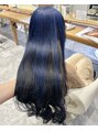 アンブレラカラー。ブルー、ブラック。髪質改善/プレミークトリートメント/炭酸スパ/ヘッドスパ/ソーダスパ/カットカラー/インナーカラー/イヤリングカラー/ケアブリーチ/ヘアメイク/ヘアセット/パーティセット/郡山