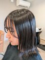中学生のカットです。全体はボリュームダウンで内側はしっかりすいて、くくりやすい、乾かしやすい、すごしやすいを目指しました。顔回りは2WAYに出来るようにこだわりました。仕上げはアイロンで毛先だけ外ハネ。