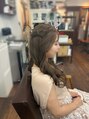 ハーフツインヘアー。ねじる位置は、お客様のお顔の骨格に合わせて絶妙にバランス調整。下の巻きの加減は、ヨシンモリ風に大きくゆるく。素敵なお洋服と、とても可愛いお顔にとても良くお似合いで、私までテンションがあがりました。ありがとうございます。