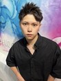 ツーブロックのショートで頭の丸みに沿ってカットし毛量が多い部分はセニングを。スタイリングはツヤ系ハードワックスでハチ周り、こめかみはボリュームを抑えて。