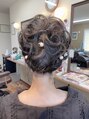 多い髪を生かしたボリューミーでゴージャスなカールアップスタイル。ショートよりのウルフレイヤーカット。襟足の長さがあればアップスタイルも可能です♪