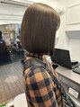【気に入っていただいたスタイルは、ブックマークをしてご提示ください。】ぱつッとボブに、人気の赤み消しカラーでオリーブベージュに!!